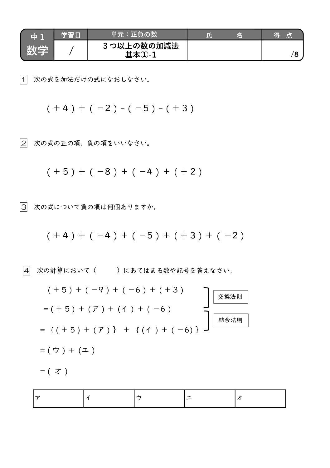 2_正負の数の計算、加減法1